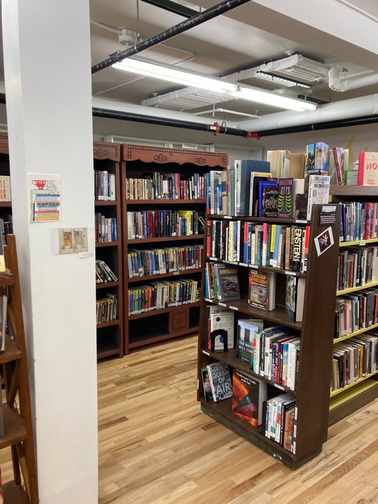 The Book Nook has a good selection of used books in all subject areas, DVDs, audio books, music CDs, and, often, games and puzzles.
